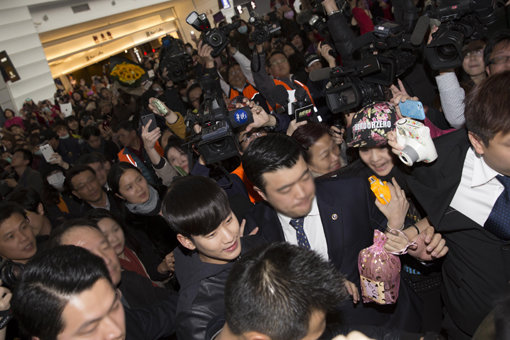 아시아투어 대만 공연을 위해 21일 현지를 찾은 김수현이 공항에서부터 수많은 팬들에게 둘러싸였다. 사진제공|키이스트