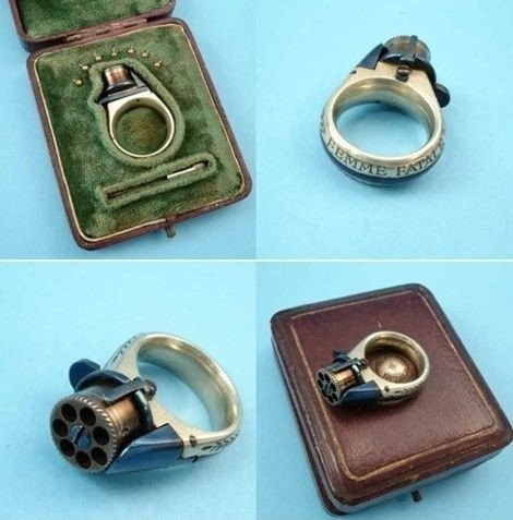 사진 속 총기를 두고 일각에서는 조작 혹은 작동이 안 될 것이라고 의심하고 있다. 하지만 이 반지 총은 2006년 미국의 총기 관련 경매 사이트에서 1만1350 달러에 판매된 것으로 알려졌다. 우리 돈으로 환산했을 때 1200만 원을 넘는 금액이다.