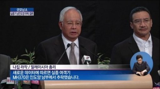 지난 24일 오후 10시(현지시각) 나지브 라자크 말레이시아 총리는 말레이시아 수도 쿠알라룸푸르 푸트라월드트레이드센터에서 기자회견에서 “새로운 데이터를 분석한 결과 실종된 말레이시아 여객기가 호주 서부연안 도시 퍼스에서 남서쪽으로 1958km떨어진 남인도양에 추락한 것으로 확인됐다”고 말했다.