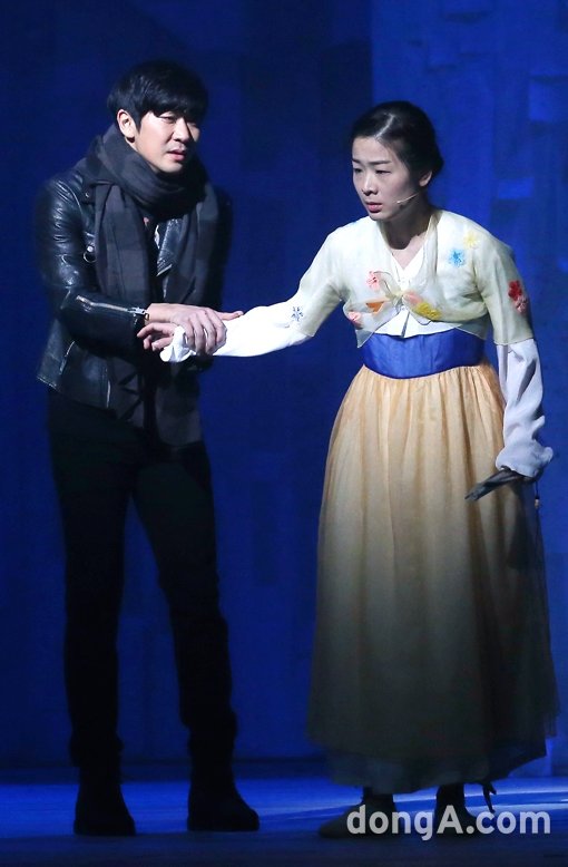 배우 송용진(왼쪽)과 이자람이 27일 오후 서울 광진구 유니버셜아트센터에서 열린 뮤지컬 ‘서편제’ 프레스콜에서 멋진 공연을 하고 있다.