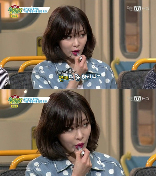 포미닛 현아가 방송 도중 자연스럽게 립스틱을 바르는 장면이 화제가 됐다.