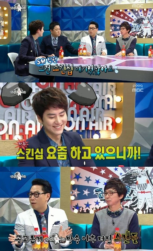이에 규현은 “그때 우리가 열애가 아니고 스킨십 이야기를 했지 않나. 내가 알기로는 지인”이라고 사건을 덮으려는 모습을 보였다. 그러자 “그러니까 요즘 스킨십을 해서 그게 민감할 수 있다”고 깐족거려 웃음을 자아냈다.