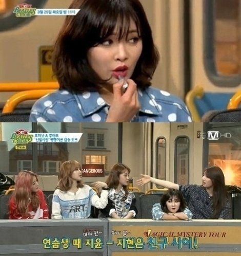 특히 현아는 “지금은 사장님이 소문이 너무 없으니 연애 좀 하라고 한다”고 말하며 갑자기 립스틱을 꺼내 발라 주위를 놀라게 했다.