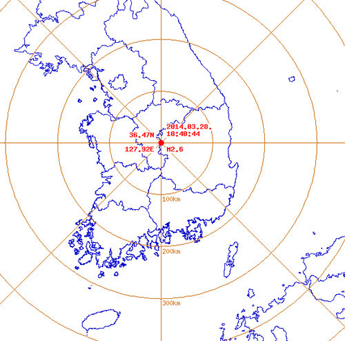 28일 기상청은 “이날 오전 10시 40분쯤 경북 상주시 서북서쪽 23㎞ 지역(북위 36.47, 동경 127.92)에서 규모 2.6의 지진이 났다”고 밝혔다.