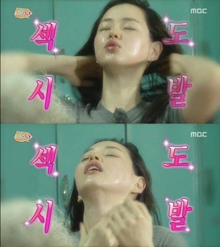 목욕을 마친 이하늬는 ‘미스코리아의 1급 뷰티 시크릿’을 전수하며 난데없이 쩍벌녀로 변신해 모두를 놀라게 했다. 이하늬는 ‘틈새 스트레칭’이라며 화장대에 발끝을 올리고 로션을 발랐다.
