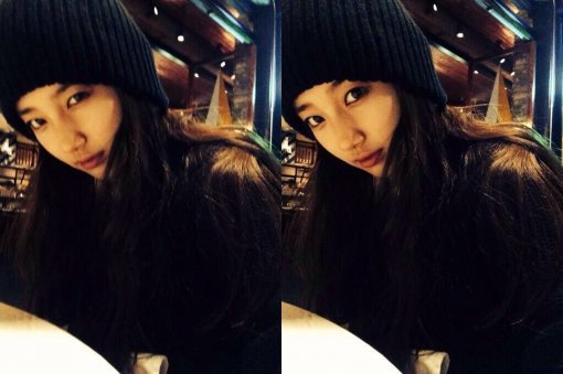 공개된 사진에는 한 식당에서 비니모자를 쓴 채 다양한 표정을 짓는 수지의 모습이 담겨 있다. 뾰로통한 모습부터 슬픈 표정까지 가지각색이다.