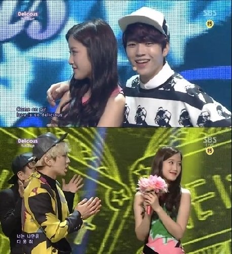 문가영은 30일 오후 방송된 '인기가요'에서 투하트의 '딜리셔스' 무대에 엑소 백현과 함께 연인 연기를 펼쳤다.