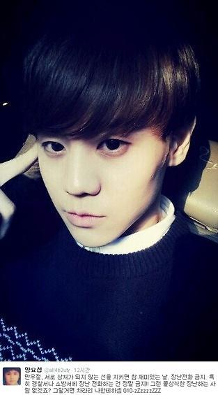양요섭은 31일 자신의 트위터에 "만우절, 서로 상처가 되지 않는 선을 지키면 참 재미있는 날. 장난전화 금지. 특히 경찰서나 소방서에 장난 전화하는 건 정말 금지! 그런 몰상식한 장난하는 사람 없겠죠? 그럴 거면 차라리 나한테 하셈"이라는 글을 남겼다.