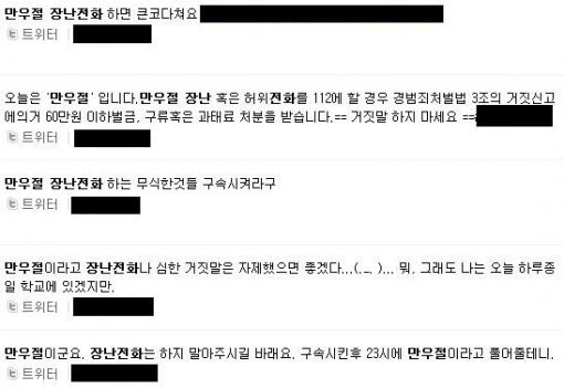 4월 1일 만우절, 서울지방경찰청은 “만우절날 112로 허위, 장난신고를 할 경우 경범죄 처벌법에 따라 벌금, 구류, 과료처분과 함께 공무집행방해죄로 처벌될 수도 있다”고 밝혔다.