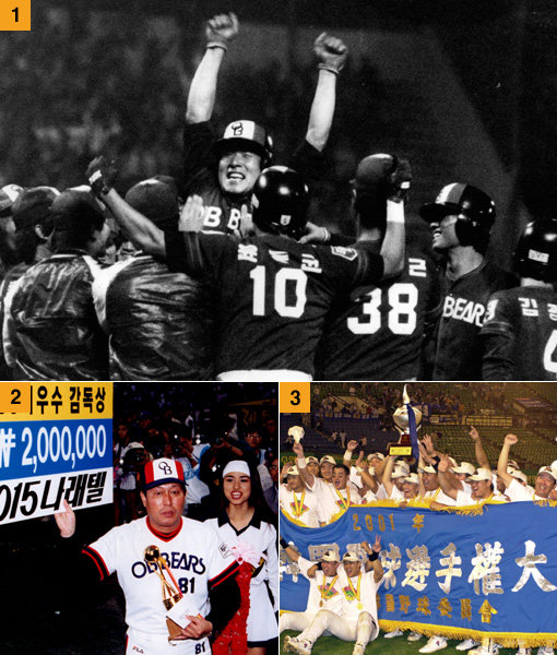 1. 두산(OB)은 한국프로야구 최초의 우승팀이라는 자부심이 있다. OB 김유동이 프로야구 원년인 1982년 삼성과의 한국시리즈 최종 6차전에서 4-3으로 앞선 9회초에 우승에 쐐기를 박는 만루홈런을 날린 뒤 동료들의 환영을 받고 있다. 2. OB는 1995년에 김인식 감독을 영입해 두 번째 우승을 차지했다. 1994년 선수단 이탈 사건으로 난파선이 된 OB는 김인식 감독의 지휘 속에 기적의 우승을 달성하며 아픔을 치유했다. 3. 1998년부터 OB에서 두산으로 구단명을 바꾼 뒤 2001년 3번째 우승 고지에 올랐다. 김인식 감독이 이끈 두산은 준플레이오프부터 시작해 플레이오프와 한국시리즈까지 석권하며 ‘미러클 두산’을 완성했다. 스포츠동아DB