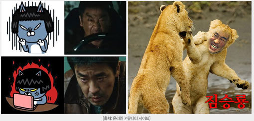 ‘표적’ 제작보고회에서 류승룡이 “짐승룡이라고 불리고 싶다”고 말한 뒤 동물 사진과 합성한 ‘짐승룡’ 패러디 부터 카톡 이모티콘과 놀라운 싱크로율을 자랑하는 ‘카톡룡’까지 다양한 패러디가 등장했다.‘더티 섹시’에 이어 그의 새로운 별명이 탄생될 것 같아 기대를 모으고 있다.