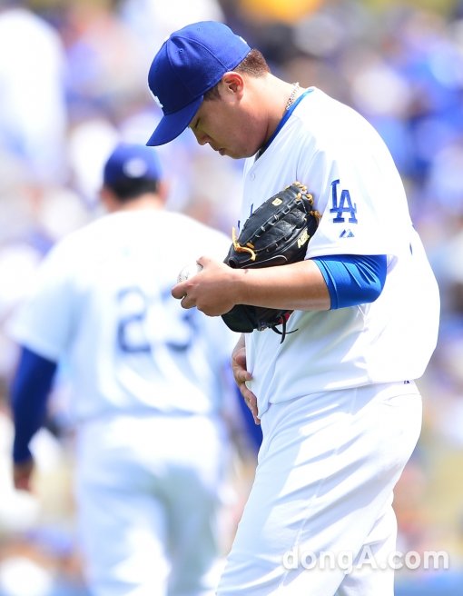 ‘코리안 몬스터’ 류현진(27·LA 다저스)이 대량 실점하며 어두운 표정을 지었다.