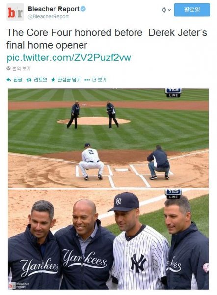 뉴욕 양키스 코어 4. 사진=블리처 리포트 트위터 캡처