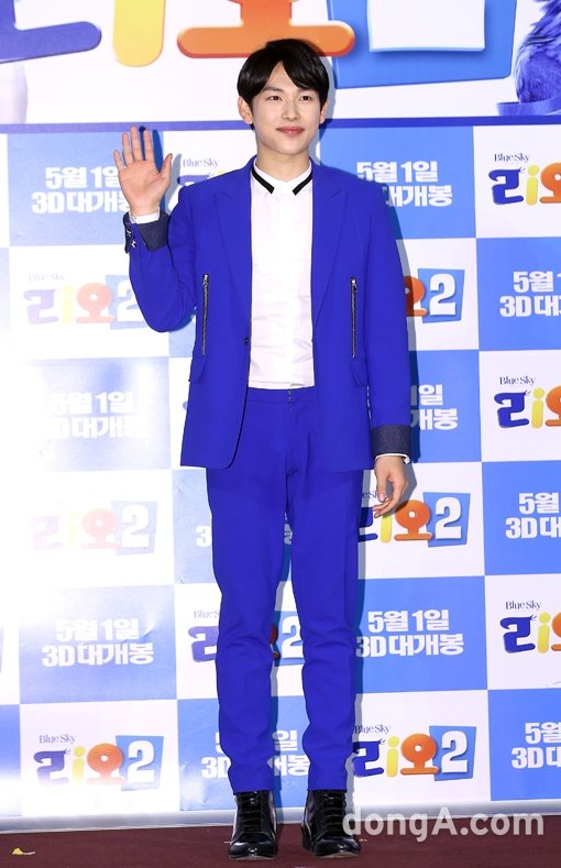 제국의 아이들의 멤버 임시완이 8일 오전 서울 영등포구 여의도CGV에서 열린 애니메이션 영화 ‘리오2’의 쇼케이스에서 포토타임을 하고 있다.