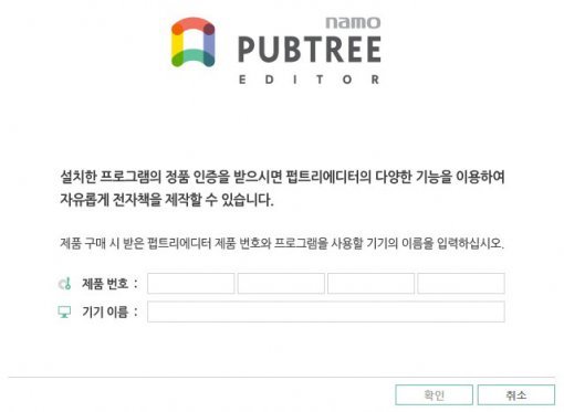 다음으로 제품 등록 대화상자가 나타날 것이다. 나모 펍트리에디터의 모든 기능을 사용하려면 제품 구매 시 받은 소프트웨어 제품 번호(CD Key)를 입력해야 한다.