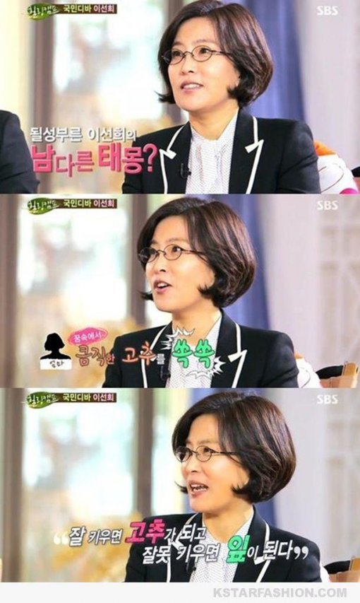 MC들이 이유를 묻자 이선희는 “태몽 때문인 것 같다. 태몽에서 어머니가 고추밭에서 큰 고추를 따셨다고 한다. 하지만 집에 와서 보니 고춧잎이 됐다”고 말했다.