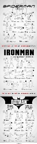 교본 속 ‘아이언맨의 운동법’은 아이언맨 캐릭터에 맞춰 하체 및 팔 근육 강화 운동에 중점을 뒀으며 건물과 거미줄에 매달려야 하는 스파이더맨은 팔 근육 운동에 중점을 맞췄다.