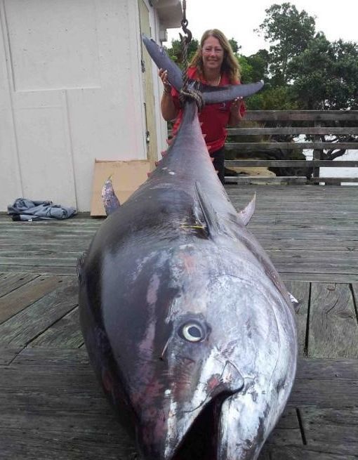 411.6kg 초대형 참치가 여성 낚시꾼에게 잡혀 눈길을 끈다.