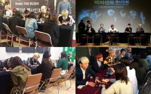 백퍼센트는 최근 각 지역에서 개최된 미니앨범 ‘뱅 더 부쉬(BANG the BUSH)’ 발매기념 팬사인회에서 팬들이 편하게 눈을 맞추고 대화를 나눌 수 있도록 의자를 마련했다.