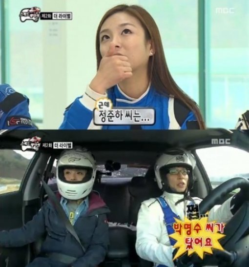 개그맨 유재석과 레이싱 선수 권봄이가 대결을 펼친다.