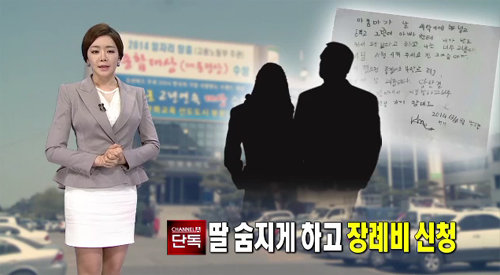 '칠곡 계모 사건'의 부부가 여덟살 딸을 때려 숨지게 한 뒤 장례식 지원비를 받으려고 군청을 찾아갔던 것으로 드러났다고 채널A가 단독보도했다.