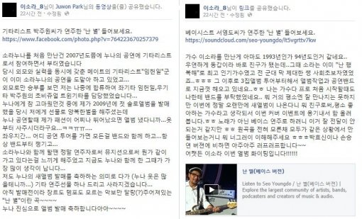 서영도 일렉트릭 앙상블을 이끄는 베이스주자 서영도 역시 커버 열풍에 합류했다. 그는 9일 새벽, 자신의 SNS를 통해 묵직한 베이스 사운드로 ‘난 별’을 담아내며 “가수 이소라를 만난 게 아마도 1993년인가 94년도인 것 같네요. 우연하게 동갑이라 바로 친구가 됐는데, 그때 소라는 이미 ‘난 행복해’로 최고 인기가수였고 전 군대 막 제대한 사회초보자였었죠”라고 첫 만남을 회고하며, “거의 평소엔 잘 만나지는 못하지만 이번에 정말 오랜만에 새 앨범이 나온다니 뭐 친구로써, 평소 좋아하는 가수라고 생각돼서 이번 커버 이벤트에 용기내서 함 올려봅니다”라며 참여 계기를 밝혔다.