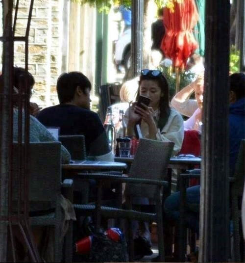 사진 속 전지현은 한 남자의 맞은편에 앉아 핸드폰을 만지고 있다. 전지현은 편안한 옷차림과 화장기 없는 수수한 얼굴에도 굴욕없는 미모를 자랑하고 있다.