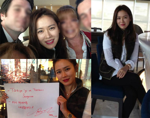 공개된 사진에는 카메라를 향해 옅은 미소를 지어 보이는 손예진의 모습이 담겨 있다. 여전히 청순하면서도 아름다운 외모를 드러내 시선을 모은다. 또 호텔 직원들로 보이는 이들과 다정하게 사진 촬영도 임했다. 그리고 터키팬들에게 전하는 메시지를 사인과 함께 적어 인사했다.