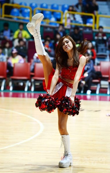 10일 오후 창원실내체육관에서 열린 ‘2013-2014 KB국민카드’ 창원 LG와 울산 모비스의 챔피언결정전 6차전경기에서 LG 치어리더가 화려한 공연을 선보이고 있다.