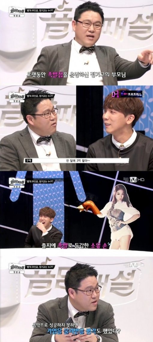 이날 정기고는 10여 년 간의 무명생활에도 경제적으로 힘들지 않았던 이유를 ‘족발집’때문이라고 밝혔다.