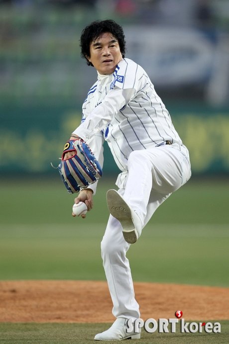11일 오후 대구 시민구장에서 열린 ‘2014프로야구’ 삼성 라이온즈와 SK 와이번스의 경기에서 가수 배일호가 시구하고 있다.