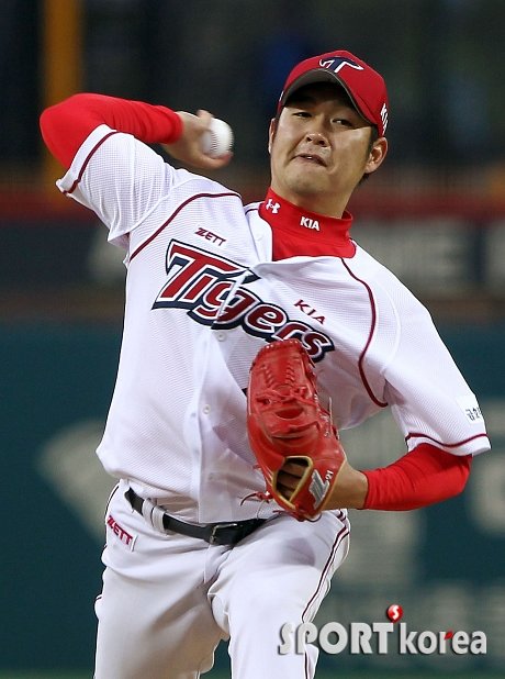 11일 오후 광주기아 챔피언스필드에서 열린 ‘2014 한국 야쿠르트 세븐 프로야구’ KIA 타이거즈와 롯데 자이언츠의 경기에서 KIA 선발 송은범이 역투하고 있다.