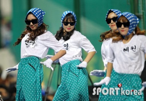 11일 오후 대구 시민구장에서 열린 ‘2014프로야구’ 삼성 라이온즈와 SK 와이번스의 경기에서 삼성 치어리더가 공연을 펼치고 있다.
