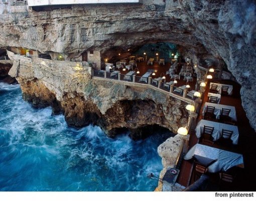 이 레스토랑은 이탈리아 풀리아에 있는 한 호텔의 시설로 밝혀졌다. 호텔은 고객들이 바닷바람과 함께 파도소리를 들으며 식사하는 이색 경험을 즐길 수 있도록 절벽에 건설했다고 한다.
