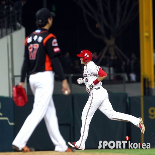 11일 오후 광주기아 챔피언스필드에서 열린 ‘2014 한국 야쿠르트 세븐 프로야구’ KIA 타이거즈와 롯데 자이언츠의 경기 8회말 2사 상황에서 KIA 필이 솔로포를 친 후 그라운드를 돌고 있다.
