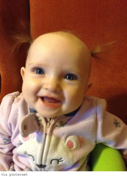 해당 사진에는 적은 숱의 머리카락을 양 갈래로 묶은 채 환하게 웃는 아기의 모습이 담겨 있다. 특히 ‘처음 머리 묶은 딸’ 사진 속의 아기는 인형 같은 외모로 환하게 웃는 모습이 훈훈함을 자아내기도 한다.
