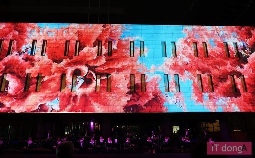 넓은 직사각형 모양의 외벽을 앞에 두고 오케스트라가 자리 잡았다. 미디어 파사드 공연의 배경 음악을 담당하기 위해서다. 가야금, 해금 등의 전통 악기와 첼로 등 서양 악기의 조화가 인상적이었다. 실제 공연 내내 바로 앞에서 울려 퍼지던 아름다운 음악은 감동을 더하기에 충분했다.