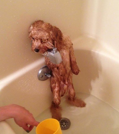 최근 한 외국 온라인 커뮤니티에 ‘씻기 싫은 강아지’라는 제목의 글과 사진이 공개돼 화제를 모았다.