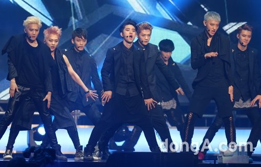 엑소가 15일 오후 서울 잠실 실내체육관에서 열린 삼성 뮤직과 함께 하는 EXO 컴백쇼에서 화려한 무대를 꾸미고 있다.