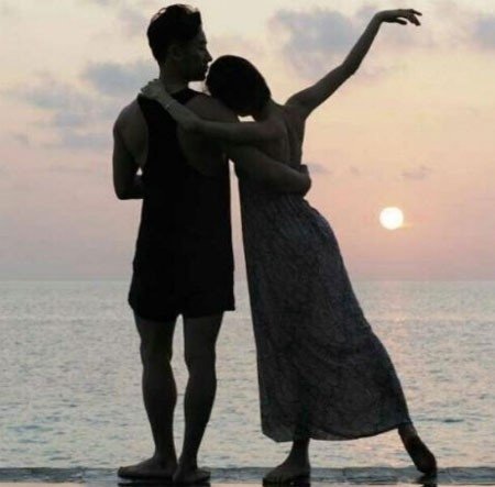 사진에는 엄태웅 윤혜진이 몰디브 해변에서 석양을 앞에 두고 포즈를 취한 모습이 담겨 있다. 역광에 비친 두 사람의 실루엣이 영화 같은 분위기를 연출해 눈길을 끈다.