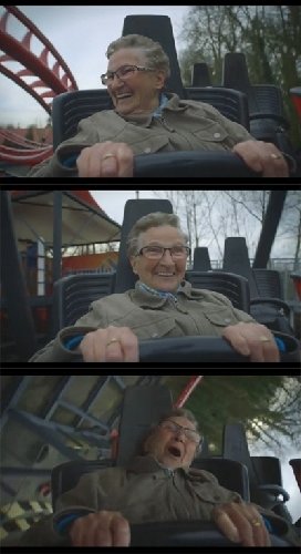 유튜브에 공개된 영상에서 롤러코스터를 타고 있는 할머니는 설렘이 가득한 표정을 짓고 있다. 잠시 후 롤러코스터의 속도가 점점 빨라지기 시작하자 할머니는 유쾌한 표정을 지으며 연신 호탕한 웃음소리를 낸다.