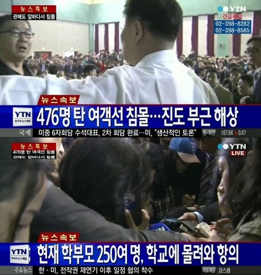이에 안산 단원고 250여명의 학부모들은 현재 학교 대강당으로 몰려들어 구조된 학생들의 명단을 알려달라고 항의하는 것은 물론 자식 걱정에 눈물을 쏟고 있는 것으로 알려졌다.