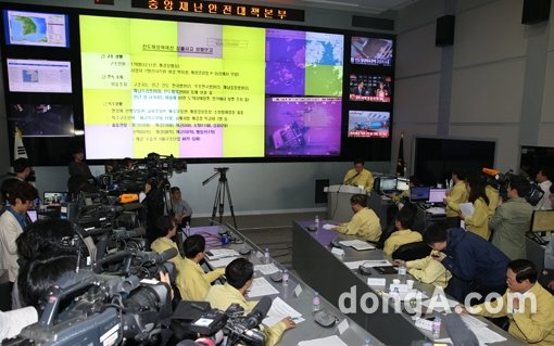 이경옥 안전행정부 2차관이 16일 서울 중앙재난안전대책본부에서 전남 진도해상에서 발생한 여객선 침몰사고에 대해 브리핑을 하고 있다.