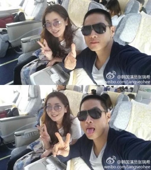장서희는 15일 자신의 웨이보에 “‘봉신영웅방2’ 촬영 가는 비행기 안에서 우연히 또 만난 승준 씨. 정말 반가워요”라는 글과 사진을 올렸다.