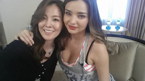 공개된 사진에서 미란다 커는 고혹적인 표정으로 인형 같은 미모를 뽐내고 있고, 김성은은 그 옆에서 해맑은 웃음으로 미란다 커와의 만남을 즐기고 있다.