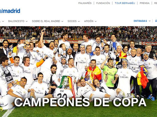 레알 마드리드가 17일(한국시간) 발렌시아 메스탈라스타디움에서 열린 FC바르셀로나와의 2013∼2014 스페인 국왕컵 결승에서 후반 40분 터진 가레스 베일의 결승골로 2-1 승리를 거두고 우승(사진)했다. 레알 마드리드는 2011년 이후 3년 만에 이 대회 우승트로피를 되찾았다. 팀 통산 19번째 우승. 바르셀로나는 경기 종료 직전 네이마르의 슛이 골대를 튕기는 불운으로 우승컵을 내줬다.