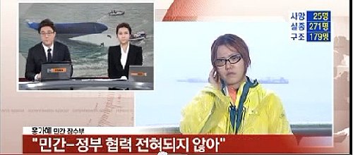 이어 “정부 관계자가 잠수하지 못하게 막아서는 등 14시간 이상 구조작업이 중단됐다”고 말했다. 홍 씨는 “실제 잠수부가 배 안에 사람이 있는 것을 확인하고 소리까지 들었다”고 전하며 “현지 상황은 언론에 보도되는 것과 전혀 다르다”고 분통을 터트렸다.