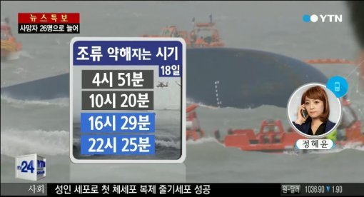 YTN은 “잠수부들이 세월호 선 내부 진입에 성공, 생존자 확인 작업을 진행중이다”라고 속보를 전했다.