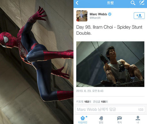 영화 ‘어메이징 스파이더맨2’(감독 마크 웹)의 주인공 스파이더맨(앤드류 가필드)의 스턴트 배우로 한국인 최일람이 참여했다는 사실이 공개되며 화제가 되고 있다.