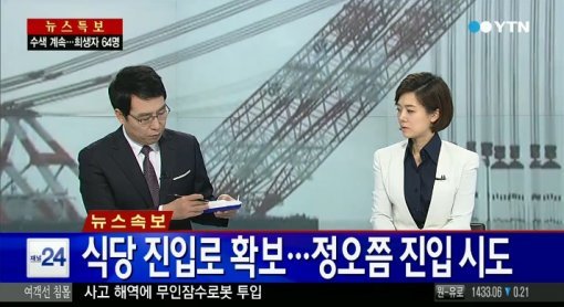 범정부사고대책본부는 21일 오전 10시 진도군청에서 “이날 오전 5시 51분께 식당 진입로를 확보했으며 낮 12께 진입을 시도할 예정”이라고 밝혔다.